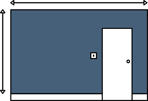 Quando houver uma janela, porta ou outro obstáculo na sua parede, meça a altura e largura total da parede e também a altura e largura do obstáculo para que possamos produzir no tamanho correto, pois a área do papel que pega o obstáculo será cortada na hora da instalação.