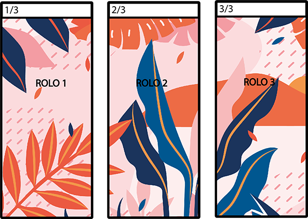 Você precisará sobrepor 1 centímetro o rolo 2 em cima do rolo 1, alinhando os desenhos.