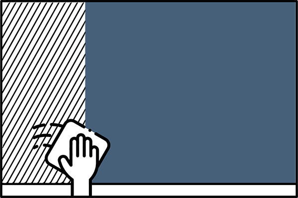 Verifique-se de que a parede esteja limpa, lisa e seca. Caso precise tirar alguma sujeira, limpe e aguarde até que ela esteja totalmente seca.