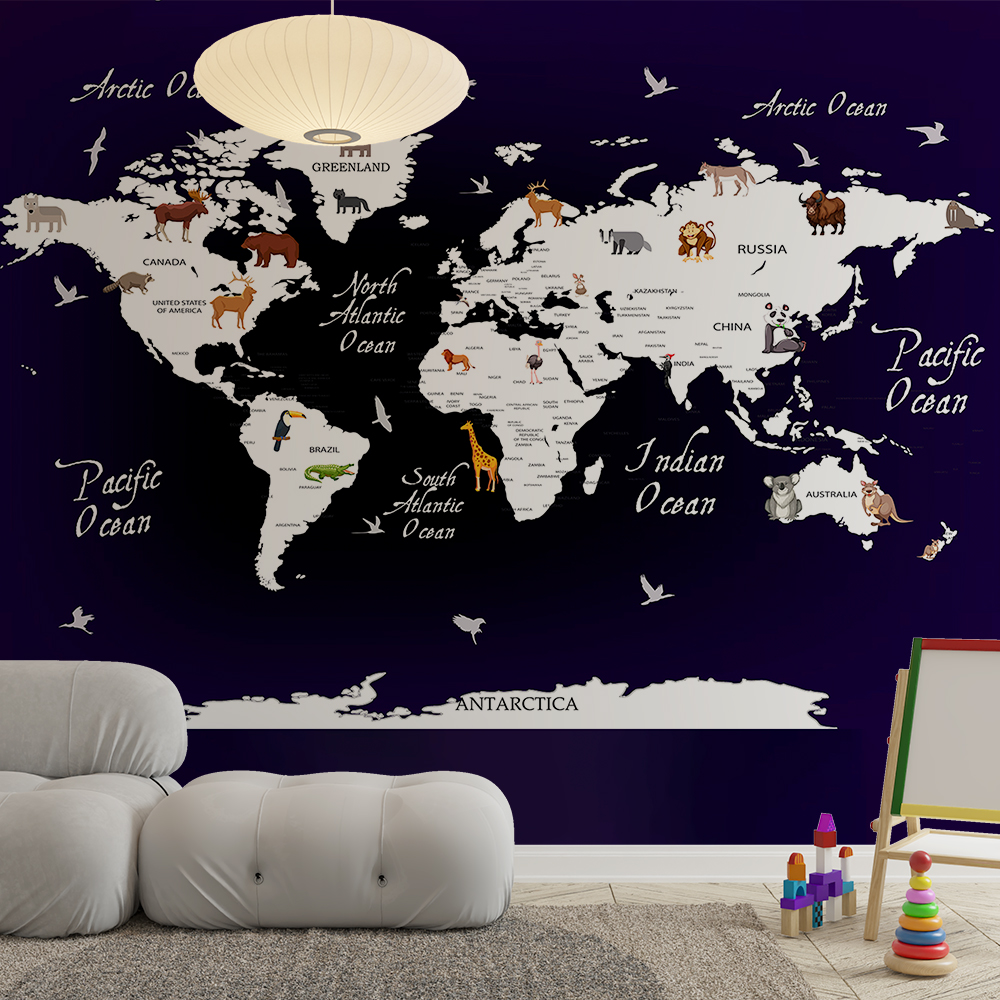 Papel de Parede Infantil de Mapa Mundi Roxo