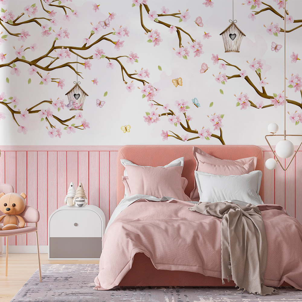 Papel de Parede infantil flores e árvores borboletas encantadas1