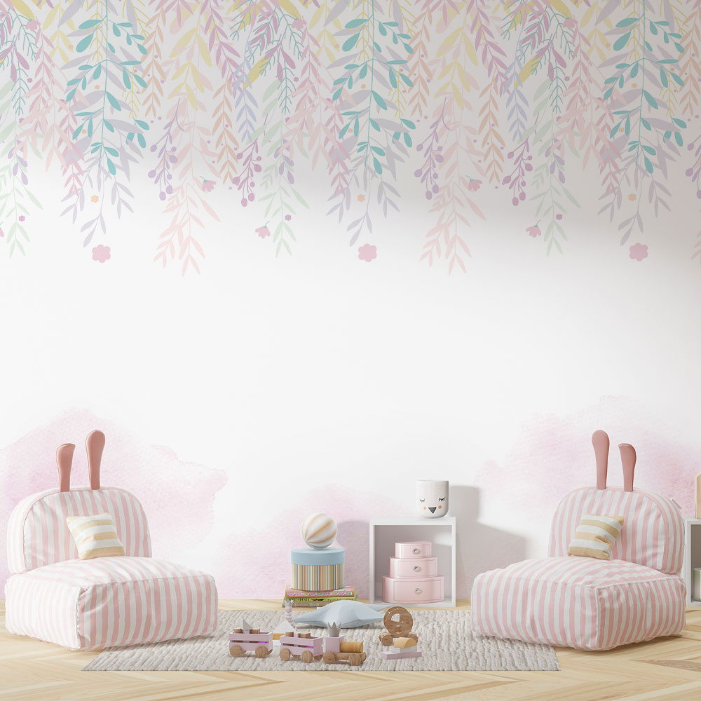 Papel de Parede infantil ramas de flores caindo