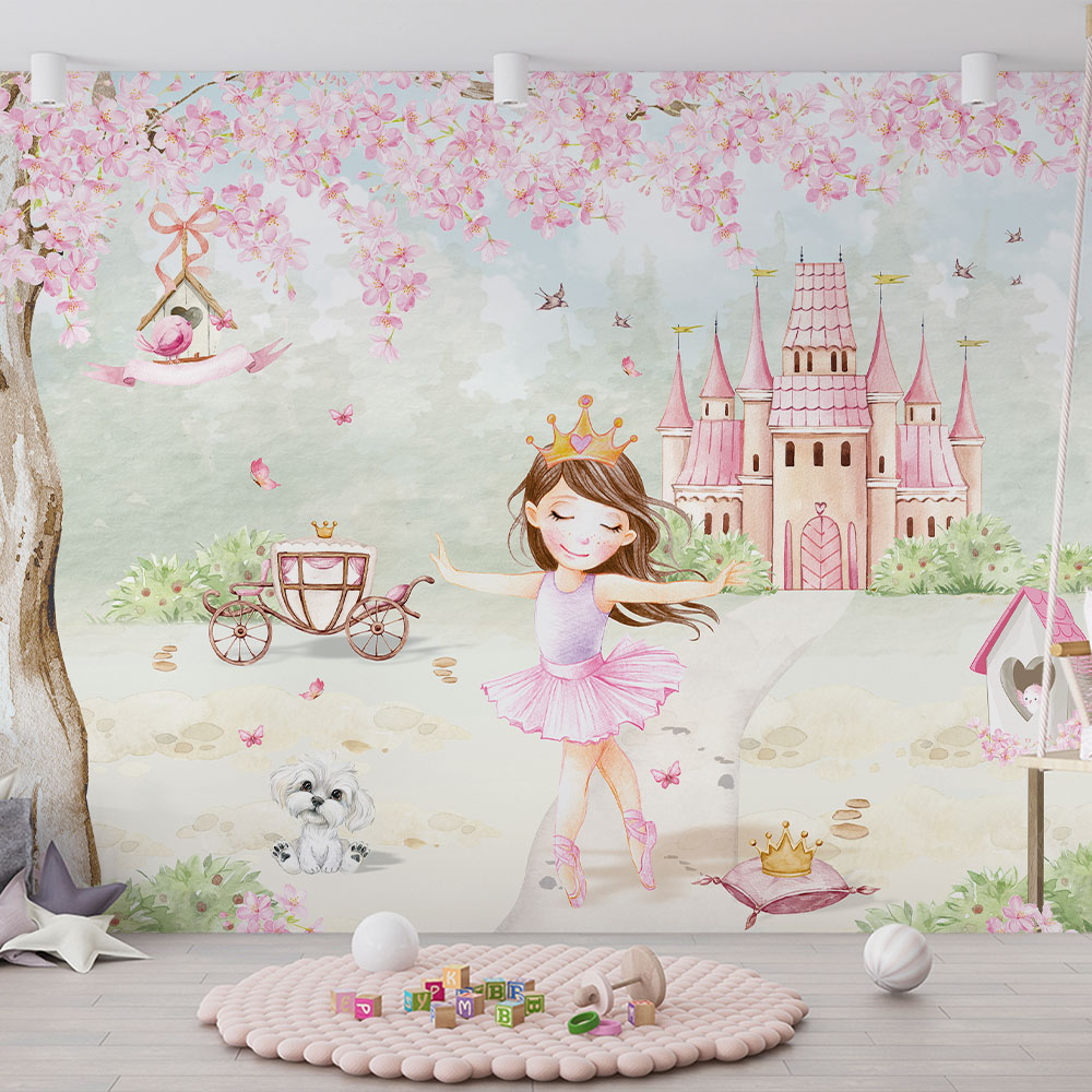 Papel de Parede Menina Bailarina com Castelo e Carruagem